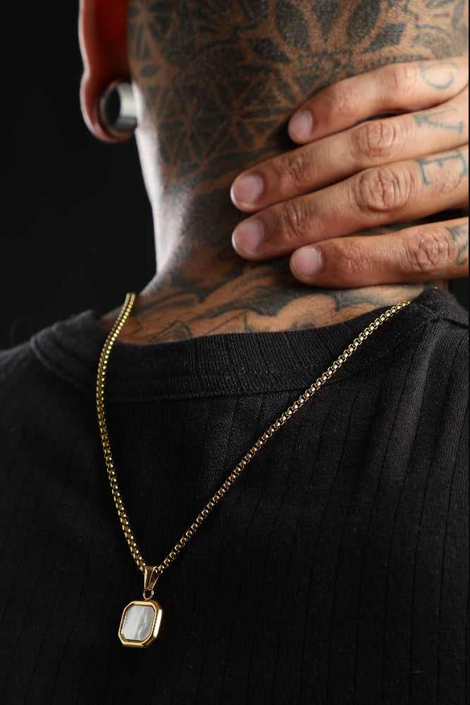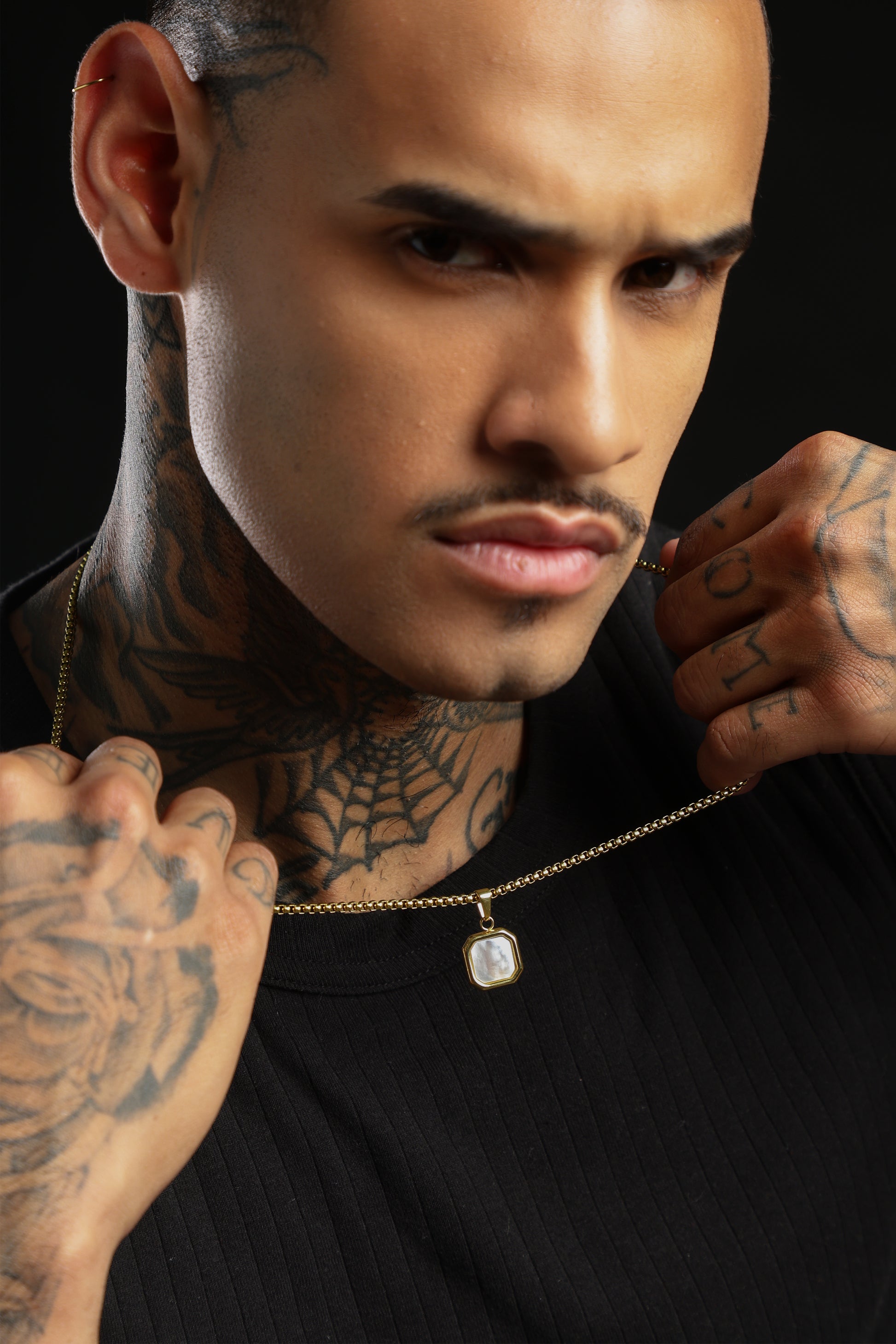 Crafted from high-quality 316 stainless steel, this chain comes with a premium pendant and features a gold-colour finish for a sleek, elevated look. Designed with an anti-tarnish coating, it maintains its shine over time, while the 22-inch round chain ensures a comfortable, stylish fit. A timeless accessory made to enhance any outfit effortlessly.Material: 316 Stainless SteelFinish: Gold ColourChain Length: 22 inches
